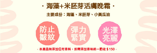 這一款海藻+米胚芽活膚晚霜,能夠抗老化、保濕、柔軟肌膚的作用,還能夠使肌膚鎮靜,有很好的鎮靜安撫效果。