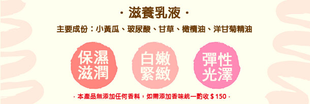 小黃瓜:具有保濕、嫩白、舒緩、柔軟、清新並且能活化肌膚、緊緻毛孔